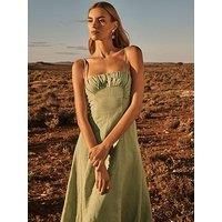 Forever New Camilla Strappy Ruched Midi Dress - Green Material Content: (55% CERTIFIED LINEN / 45% LIVAECO RAYON Washing Instructions: Hand Wash Only