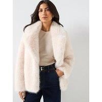 Forever New Hunter Faux Fur Coat Size & Fit True to size - order your usual size Regular fit Available in sizes 6 - 16 Details Hunter Faux Fur Coat by Forever New Beige Notch lapel collar Long sleeves Faux fur fabric Side seam pockets Material & Care Material Content: 100% Polyester Washing Instructions: Dry Clean Only