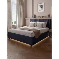 Xr Living Maisie Velvet Ottoman Bed With Under Frame Led Lights - Navy