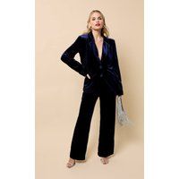 Step into sleek sophistication with our Navy Velvet Trousers, crafted from plush velvet for a luxe, modern finish. Featuring a flattering high waist, regular fit, and wide leg silhouette, these trousers elongate the frame while offering all-day comfort. Their versatile design makes them perfect for both casual chic and elevated evening looks. Pair with the matching velvet blazer for a statement co-ord outfit that exudes timeless elegance. | Little Mistress Women's Navy Velvet Trousers | Size: 18 - Manufacturers part number: Little Mistress_9503273157156