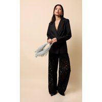 Step into effortless elegance with these black lace wide leg trousers, crafted for a statement yet refined look. Featuring a high waist and regular fit, theyre both flattering and comfortable. The regular length and flowy wide leg cut offer a graceful silhouette with every step. Style with the matching co-ord shirt for a chic, coordinated ensemble. | Little Mistress Women's Black Lace Wide Leg Trousers | Size: 18 - Manufacturers part number: Little Mistress_9503488253384