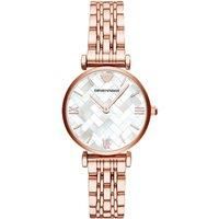 Water-resistant: Withstands everyday splashes (30 metres). Designer watch for women: Accessorise your wrist with a minimal yet chic watch from Emporio Armani. Precise quartz movement: Enjoy accurate, low-maintenance timekeeping. Stainless steel case: Durable case and bracelet feature a polished rose gold finish for elegant sophistication. Classic analogue dial: Minimalist face with a parquet mother-of-pearl design and brand logo at the 12 o'clock marker. Versatile style: Effortlessly transitions from d...