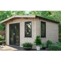 The 12x12 Power Chalet Log Cabin - DDW comes complete with uPVC Double Doors in Anthracite Grey and uPVC 'Tilt and Turn' opening windows. All glass is both toughened and double glazed - perfect for extra security and insulation. Not only is there the toughened double glazing, but there is a 5-point locking mechanism on all doors and windows. Whether you plan to use the log cabin for storage, or for a home office, this extra secure space will provide that additional peace of mind. These cabins are unde...