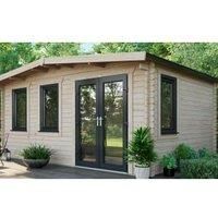 The 12x16 Power Chalet Log Cabin - WWDD comes complete with uPVC Double Doors in Anthracite Grey and uPVC 'Tilt and Turn' opening windows. All glass is both toughened and double glazed - perfect for extra security and insulation. Not only is there the toughened double glazing, but there is a 5-point locking mechanism on all doors and windows. Whether you plan to use the log cabin for storage, or for a home office, this extra secure space will provide that additional peace of mind. These cabins are und...