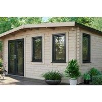 The 16x16 Power Chalet Log Cabin - DDWW comes complete with uPVC Double Doors in Anthracite Grey and uPVC 'Tilt and Turn' opening windows. All glass is both toughened and double glazed - perfect for extra security and insulation. Not only is there the toughened double glazing, but there is a 5-point locking mechanism on all doors and windows. Whether you plan to use the log cabin for storage, or for a home office, this extra secure space will provide that additional peace of mind. These cabins are und...