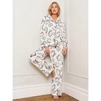 Jim Jam The Label Aop Coffee Pyjamas - Chocolate Fun, Funky & Snuggly! The luxurious pyjama set you all need. This fabric has a beautiful handfeel, a fun all over pirnt, the trousers feature an elasticated waistband and have a loose silhouette giving the perfect fit for both sleeping or lounging in & the garment has been finished off with tonal satin ties to complete the look. Material Content: 95% Polyester 5% Elastane Washing Instructions: Machine Washable - Manufacturers part number: WQNFT