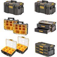 This DeWalt 8 Piece Tool Box and Organiser Set is made up of a range of DeWalt's most popular range of Tough System and TSTAK containers. Features & Benefits • Auto lock side latches • Heavy duty build quality for long term reliability in industrial environments • Individual containers can be removed if required • IP65 mold intergal seals • Organiser case for small components and accessories • Stronger and wider handles DWST82968-1 Specifications • Dimensions: 440x337... - Manufacturers part number: DEWKIT19