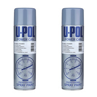 Two Pack U-POL Grey Primer High Build aerosol, 500 ml each. Automotive primer that primes, fills and sands easily. Fast drying, clog-free spray, cellulose based and overpaintable with most paints. Ideal for cured paint, polyester fillers and GRP bodywork. Great value.