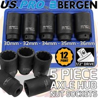 Report incorrect product informationSocket Set Designed For Axle & Hub Nuts. Made From Heat Treated Hardened And Tempered. Heat Treated Hardened & Tempered. US.PRO 5 pc 1/2"dr Deep 12 Sided Impact. Impact Tools/Wrenches, Also Breaker Bars/Strong Arms.