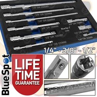 Report incorrect product informationALL 9 EXTENSION BARS HAVE A HEAVY DUTY SPRING LOADED BALL BEARING TO HOLED SOCKET SECURELY IN PLACE. BLUESPOT 9 PIECE MIXED DRIVE EXTENSION BAR SET 1/4" - 3/8" - 1/2" DRIVE. WITH KNURLED NON - SLIP GRIP ON SHAFT FOR EXTRA GRIP ON THE EXTENSION BARS.