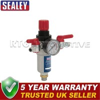 Report incorrect product informationAir Filter/Regulator 3/8"BSP Male to 1/4"BSP Male. We are an authorised distributor for Sealey parts. Equivalent to Part Numbers: . If you order before 12PM we'll dispatch same day from our UK warehouse. For guaranteed next day delivery please select this option at checkout. This product comes with free 30-day no quibble returns (UK only).