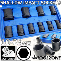 Report incorrect product information10PCS 1/2" DRIVE 6 POINT SHALLOW IMPACT SOCKET SET. SIZES :10MM - 11MM - 12MM - 13MM - 14MM - 17MM - 19MM - 21MM - 22MM - 24MM. DRIVE : 1/2" DRIVE.