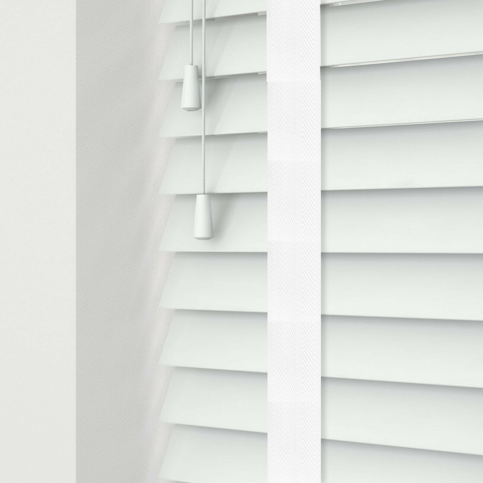 Venetian Blinds. Roller Blinds. Wooden Blinds. 50mm faux wood slats with a painted and grain effect finish and Co-ordinating fabric tapes. Vertical Blinds. These blind width is easily trimmable with a circular saw.