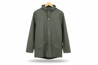 Report incorrect product informationProduct Line: RAINS Essential. Made from 100% polyester with a polyurethane coating, it ensures waterproof protection. The jacket includes a snap front closure, front flap pockets, and a hood with a built-in cap, providing both style and practicality for casual wear.