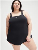 Report incorrect product informationThis comfortable swimdress from Speedo features flattering panels for a confidence-boosting fit on pool and beach days. This swimwear costume offers supportive coverage throughout and an inner lining for extra comfort, making it ideal for the beach. The square neckline and easy-to-adjust straps let you find your perfect fit, while the smooth, non-padded cups create a flattering shape that feels great to wear. Perfect as a complete swimsuit outfit, this plus size suit combines the coverage of a short ski...