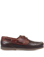 Step into the weekend in style with these two-tone leather boat shoes from Jones Bootmaker. The traditional design features a lace-up fastening with contrast stitch detailing around the toe.
