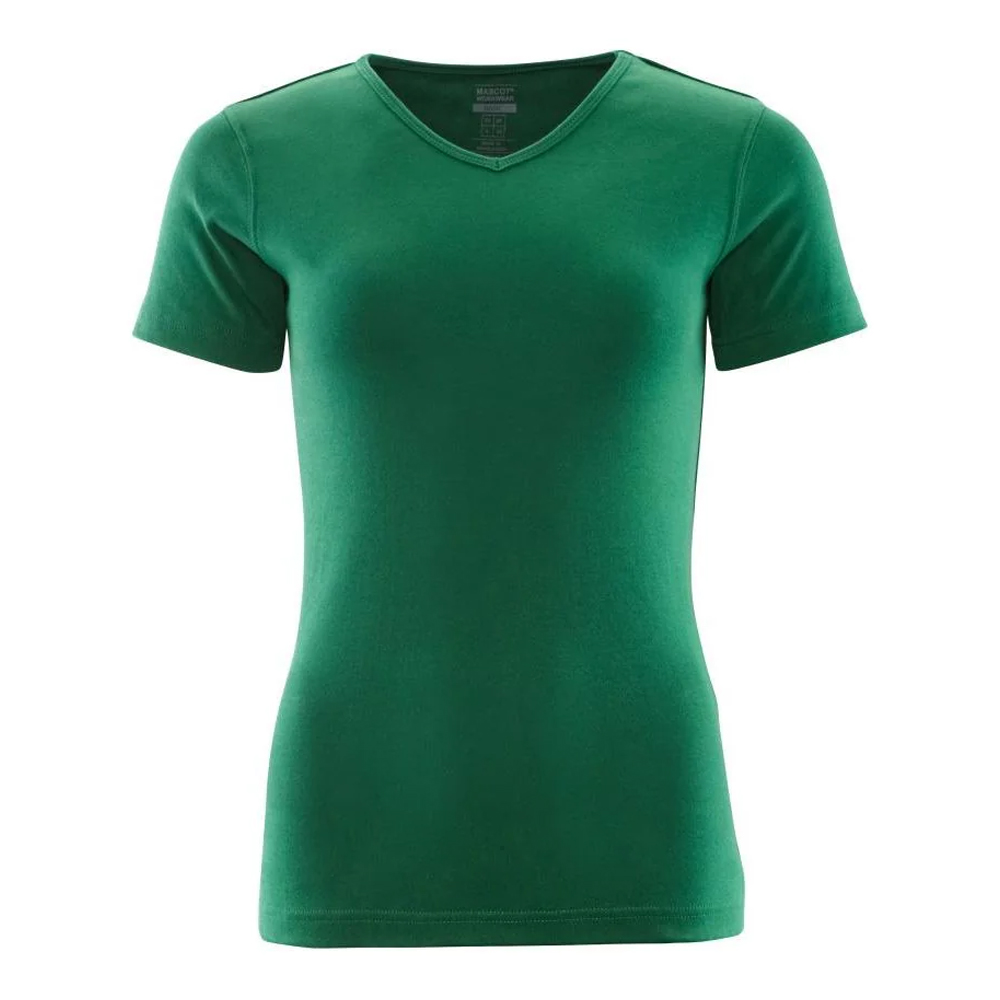 Report incorrect product information100% Cotton. Design: Logo, Plain. Neckline: Ribbed, V Neck. Sleeve-Type: Short-Sleeved. Taped Seams. Fit: Lady Fit. Sustainability: Oeko-Tex Standard 100 Certified. XS: 30 in.