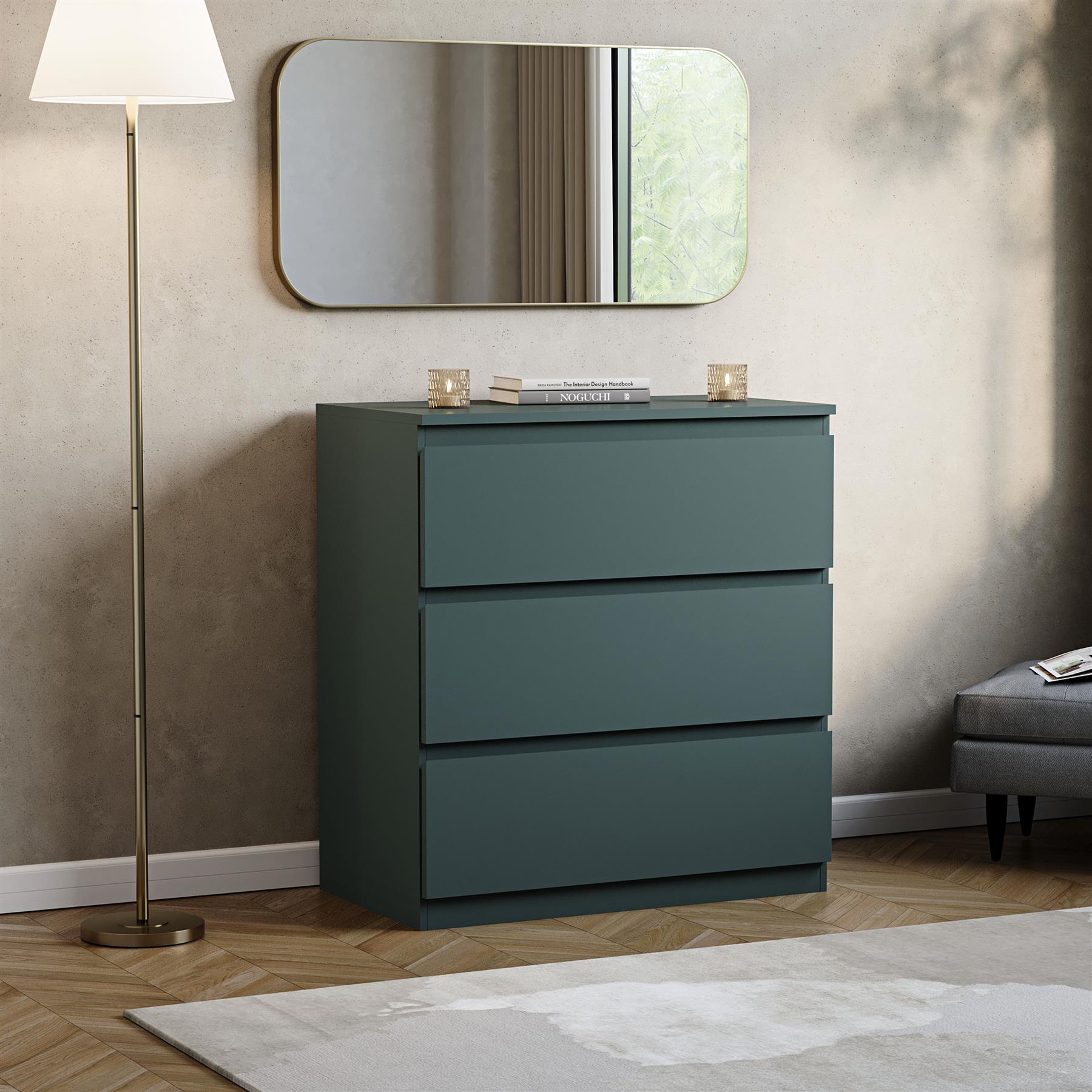 Report incorrect product informationIntroducing our sophisticated Denver 3 Drawer Chest of Drawers, a perfect blend of modern minimalist design and practical functionality. This piece of bedroom furniture features a sleek, handle-free design that enhances any contemporary decor with its clean lines and uncluttered aesthetic.