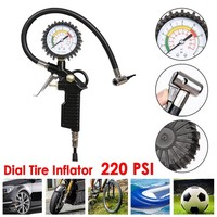 Report incorrect product informationDial Tire Inflator Pressure Gauge Tire Pistol 220 PSI Deflation Feature: 1.Precise Pressure Gauge: Check pressure by the built-in dial indicator. The dial indicator has two pressure units (PSI and BAR), which is easy to read. Inflation range is 0-220psi. 2.Blow-off Valve: 2-in-1 tire inflator with pressure gauge is designed with a blow-off valve. With a touch of the button, you can deflate the tire when the tire is overfilled or in case of extreme weather conditions. 3.Easy to Use: Press down the buckle, connect the hose to the air valve of the tire and release the button. .