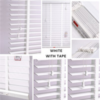 FAUX WOOD VENETIAN BLINDS 50MM WHITE WOOD WOODEN WINDOW BLIND EASY FIT TRIMABLE
