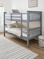 Report incorrect product informationCrafted from solid pine for a sturdy feel, this bunk bed has been splashed in a smooth grey lacquered finish. It's classically styled with a slatted design to the headboards and footboards, then finished with pine slats, a built-in ladder for easy access, plus a rail guard to the top bunk.