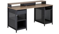 Modular 1 Drawer Gaming Desk - Oak Effect & Black Description ---Made from metal. ---1 drawer with metal runners. ---1 fixed shelf. ---3 adjustable shelves. ---1 storage cupboard. ---Easy cable access. ---Self-assembly - 2 people recommended. ---If this product is over 60cm high it must be securely attached to the wall to prevent overturning. Dimensions: ---Size H85, W150, D60cm. ---Under desk chair space H70.5, W82cm. ---Maximum load capacity of desk 25kg. ---Weight 56kg. Packaged dimensions: ---Package dimensions H8, W157, D43cm. ---Second package H11, W79, D43cm . Delivery Please note that we deliver to UK Mainland addresses only and it excludes Highlands, Islands and Northern Ireland if in doubt please email before purchasing as additional charges may apply.
