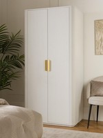 Enhanced with curved corners and luxurious gold-coloured handles, and standing on an elegant matching plinth, it combines sophisticated style with practical organization - perfect for modern bedrooms seeking both form and function.