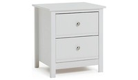 Brooklyn 2 Drawer Bedside Table - White. Internal drawer H15.3, W32.5, D33.6cm. Part of the Brooklyn collection. If this product is over 60cm high it must be securely attached to the wall to prevent overturning.