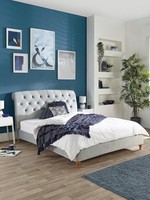 A stunning bed with a luxurious hand upholstered, Chesterfield style headboard. The curved headboard is finished in premium quality brushed velvet fabric with deep buttoning and padding for an exceptional finish.