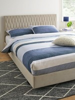 Ashton Fabric Kingsize Bed Frame Light Grey Stylish and Modern Bed Solution Description ---This luxurious Ashton frame bed by Very Home is upholstered in a texturally tempting fabric. The light grey hue will complement all kinds of bedding styles and patterns, from neutral tones to bright colours. Designed with a contemporary low foot end, its crowning glory is the breathtaking headboard which flaunts a stitched diamond pattern for added elegance. Padded for comfort when you're sitting up in bed, its finished with sprung slats for superb mattress support. ---King: H101 x W157.5 x D213cm Height from floor to top of footboard: 27 cm ---Assembly: Self Assembly.