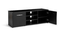Habitat Hayward 2 Door Small TV Unit - Black Gloss Description Part of the Hayward collection. ------Made from foil faced chipboard with a gloss finish. ------Size H 43.1, W 120, D 38.9cm. ------Weight 28kg. ------4 shelves. ------2 doors. ------Chrome finish handles. ------1 media storage section. ------Largest height of media equipment sections 11.5cm. ------Easy cable access. ------Suitable for screen sizes up to 50in. ------Maximum weight of TV 30kg. ------Self-assembly - 2 people recommended. Package Dimensions: ------Package 1 dimensions: H125.2, W42.4, D6cm. ------Package 1 weight: 16kg. ------Package 2 dimensions: H121.2, W40.3, D4.5cm. ------Package 2 weight: 11kg.