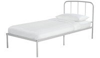 Report incorrect product informationFreja Single Metal Bed Frame - Silver Description Part of the Freja collection. ------Metal frame. ------Metal feet. ------Base with metal slats. ------No storage. ------Size W94.5, L194.8, H95cm. ------Height to top of siderail 63cm. ------28cm clearance between floor and underside of bed. ------Weight 12.4kg. ------Total maximum user weight 110kg. ------Self-assembly - 2 people recommended. Delivery Please note that we deliver to UK Mainland addresses only and it excludes Highlands, Islands and Northern Ireland if in doubt please email before purchasing as additional charges may apply. We do not ship to the following postcodes: IV, HS, KA27-28, KW, PA20-49, PA60-78, PH17-26, PH4-44, PH49-50, ZE, BT, IM, TR21-25, JE, GY, AB31-56, Orders received Monday to Friday before 12pm will usually be dispatched same day.