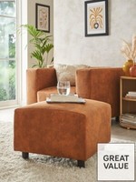 Clarkson Faux Suede Footstool - Chestunt. Quality- Faux Suede. Material Content: faux leather. Number of Seats: 1. Assembly: Part Assembled. to mount only feet. modern design. Made with materials that support responsible forestry.