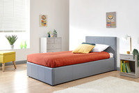 Report incorrect product informationSource Side Lift Ottoman Single Bed Grey Modern Bedroom Storage Solution Description This stunning side lift ottoman bed offers an attractive combination of contemporary style and ample storage space. This beautifully crafted frame is finished in high quality hopsack fabric and complemented by a simple yet stylish stitched headboard. This is an ideal solution if space is at a premium in your bedroom as the ottoman base provides generous storage space for linen, blankets, towels or clothes. For ease of use, this stylish ottoman has colour coded holes that allows you to assemble the ottoman to lift up from the side of your choice. The base lifts easily with the help of a gas hydraulic system so you can access the lined storage area underneath the bed.