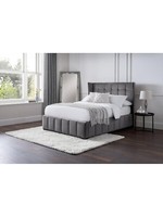 Report incorrect product informationJulian Bowen Gatsby Double Fabric Bed - Grey Description ---Dimensions: Double - Height 128, Width 161, Depth 205 cm ---Taking the style of the past and giving it a modern twist, the Gatsby bed frame from Julian Bowen is highlighted by a classic winged headboard. Softly padded for added comfort, it features decorative stitching, while the bed is upholstered in a sumptuous velvet fabric you'll love to run your fingers across. The smart grey shade will match all sorts of bedding designs and room colours, while sprung slats put plenty of support under your mattress (please note: mattress must be purchased separately). Delivery Please note that we deliver to UK Mainland addresses only and it excludes Highlands, Islands and Northern Ireland if in doubt please email before purchasing as additional charges may apply.