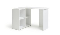 Report incorrect product informationClever Malibu. When space is at a premium, this white desk fits neatly into a corner. Tidy, compact and nicely out of the way. On the left pedestal you'll find an open shelf unit-4 large cubby holes tall enough for files, baskets and storage boxes with your work accessories.