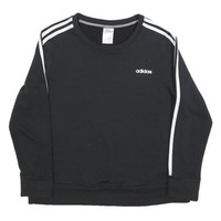 This Adidas womens sweatshirt features a sleek black design with iconic white three-stripe detailing running along the length of the sleeves and a small adidas logo embroidered on the left chest. It has a classic crew neckline and ribbed cuffs and hem for a neat finish. Made from a comfortable cotton blend fabric, the sweatshirt offers a soft feel and good breathability. The fit is relaxed and suitable for casual wear or light sports activities, allowing for easy layering and all-day comfort. Perfect for fans of the Adidas brand, this pullover combines simple sporty style with versatility.