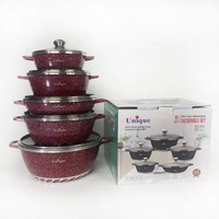 Report incorrect product informationCook in style with theUnique 10-Piece Granite Die-Cast Aluminium Cookware Set. This premium casserole pot set includes 5 durable granite-effect pans with matching glass lids. 28cm Shallow Casserole / Fry Pan + Glass Lid (~4L).