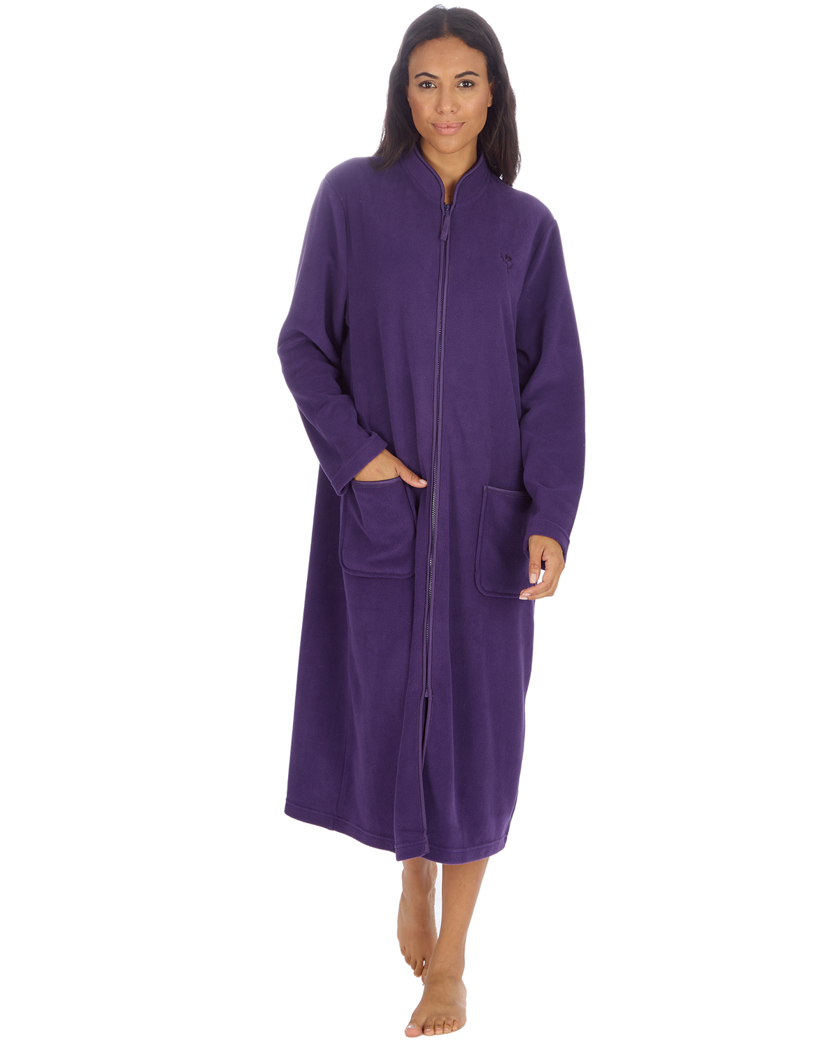 Ladies Zip Up Dressing Gown Soft Fleece Zipped Robe Nightwear UK 10-28.