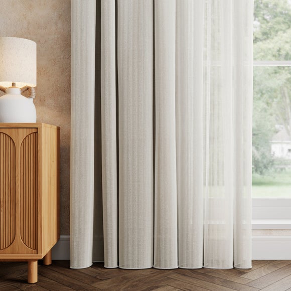 Report incorrect product information* Lightweight, polyester and linen blended composition* Striped design* Available in a selection of header options* Coordinating Made to Measure Fabric by the Metre available to purchase separately Introduce a natural touch with the Iona Made to Measure Voile Curtain. This lightweight polyester-linen blend fabric features an elegant striped design, adding subtle texture and warmth to your interiors. Perfect for creating custom curtains that offer both privacy and light filtration, its available in a ran...
