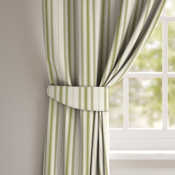 Report incorrect product information* Made to Order* Timeless stripe design* Available in different colourways* Polycotton and linen composition* Choose plain or piped edge* Coordinating Made to Measure items available to purchase separately* Made in UK Add character and warmth to your space with the Barsby Made to Order tiebacks. Featuring a timeless stripe design in a range of colourways, these tiebacks are versatile across various interior styles and rooms. The colorful stripes sit on a natural background creating a cosy, inviting feel...