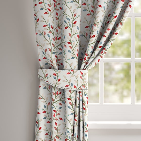 Report incorrect product information* Made to Order* Multi coloured embroidered leaf trail design* Premium polycotton composition* Choose plain or piped edge* Coordinating Made to Measure items available to purchase separately* Made in UK Timeless and elegant, the Rowen Made to Order tiebacks showcase a multi coloured embroidered leaf trail design consisting of vibrant red, green, and blue tones. Great for introducing colour into your room or an uplifting nod to nature. The embroidered detail adds richness and texture for a more premium f...