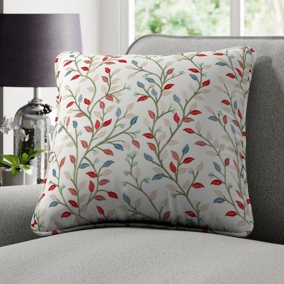 Report incorrect product information* Made to Order* Multi coloured embroidered leaf trail design* Premium polycotton composition* Choose plain or piped edge* Coordinating Made to Measure items available to purchase separately* Made in UK The Rowen Made to Order cushion will add a timeless and elegant touch to your space. Featuring a multi coloured embroidered leaf trail design consisting of vibrant red, green, and blue tones, its great for introducing colour into your room or an uplifting nod to nature. The embroidered detail adds richne...