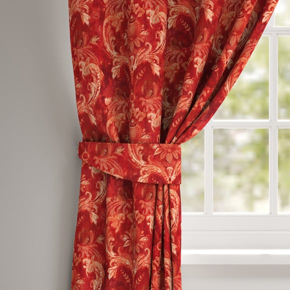 Report incorrect product information* Made to Order* Classic damask design* Red colourway* Velvet base fabric made from recycled polyester* Choose plain or piped edge* Coordinating Made to Measure items available to purchase separately* Made in UK The Celeste Made to Order tiebacks are the perfect complement to our matching Made to Measure curtains. Add a bespoke finish and keep your curtains looking neat and tidy. Featuring a classic Damask design on a deep, dark, luxurious red colourway, these tiebacks are bold, vibrant, and stylish. Th...
