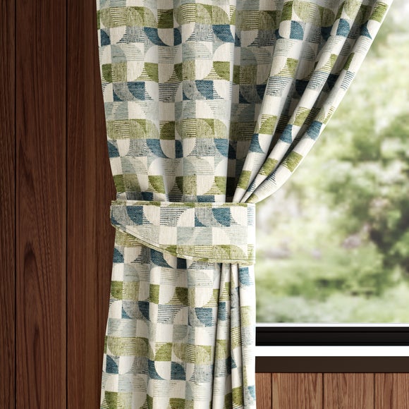 Report incorrect product information* Made to Order* Woven geometric design* Available in a choice of colourways* Choose piped or plain edge* Polycotton composition (42% Recycled Polyester, 42% Polyester, 16% Cotton)* Coordinating Made to Measure curtain and items available to purchase separately* Made in the UK Part of our exclusive Elements brand, the Elements Jackson Made to Order tiebacks are the perfect complement to the Elements Jackson Made to Measure Curtain. Showcasing a stylish woven geometric design, these tiebacks will add a b...