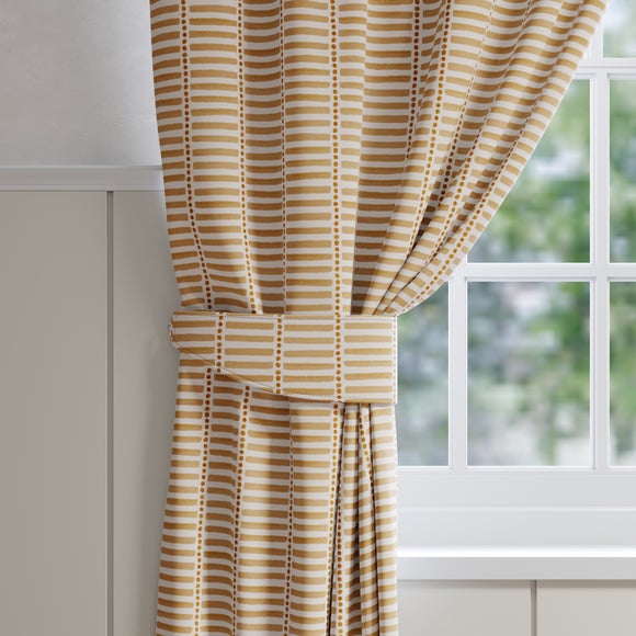 Report incorrect product information* Made to Order* Emily Bond* Motif design* 100% cotton* Available in different colourways* Choose plain or piped edge* Coordinating Made to Measure items available to purchase separately* Made in UK Fun, modern, and playful, the Emily Bond Fergus Made to Order tiebacks feature a motif design of horizontal stripes and circles. From neutral to more vibrant tones, choose from a selection of colourways. Crafted from 100% cotton, the fabric is long-lasting and breathable. A great choice for living rooms, bed...