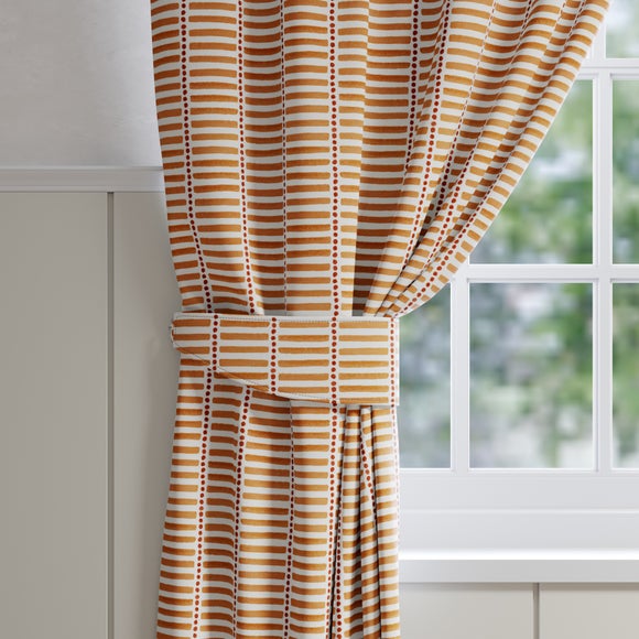 Report incorrect product information* Made to Order* Emily Bond* Motif design* 100% cotton* Available in different colourways* Choose plain or piped edge* Coordinating Made to Measure items available to purchase separately* Made in UK Fun, modern, and playful, the Emily Bond Fergus Made to Order tiebacks feature a motif design of horizontal stripes and circles. From neutral to more vibrant tones, choose from a selection of colourways. Crafted from 100% cotton, the fabric is long-lasting and breathable. A great choice for living rooms, bed...
