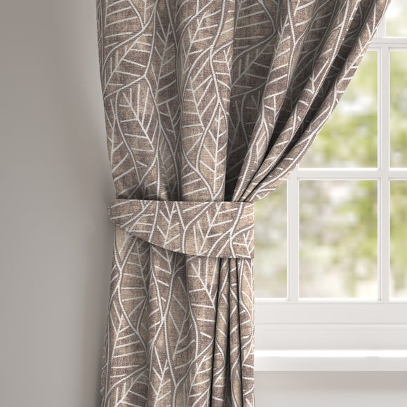 * Made to Order* Embroidered leaf design* Jacquard fabric* Available in different colourways* Polyester and jute composition* Choose plain or piped edge* Coordinating Made to Measure items available to purchase separately* Made in UK Bring a bold, contemporary, and stylish update to your space with the Aspen Made to Order tiebacks. Featuring a jacquard, embroidered leaf design, this pattern is woven into the fabric giving you rich detail and texture. Available in different colourways to suit your style....