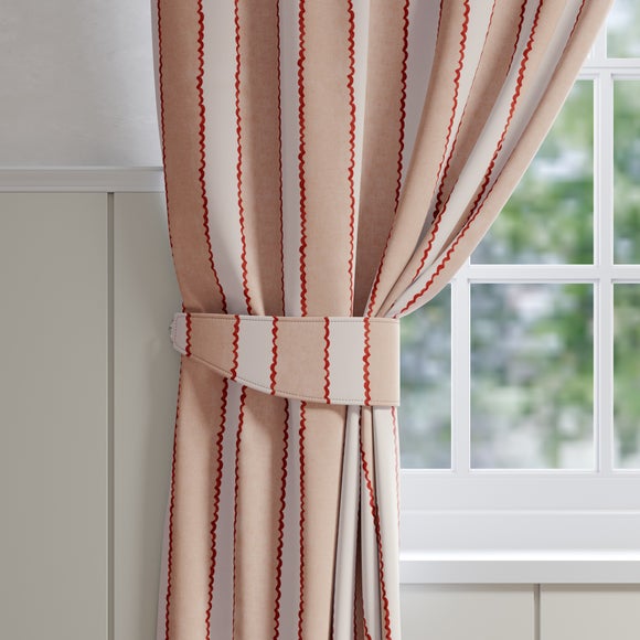 Report incorrect product information* Made to Order* Emily Bond, stripe design* 100% cotton* Available in different colourways* Choose plain or piped edge* Coordinating Made to Measure items available to purchase separately* Made in UK Add a stylish and playful addition to your space with the Emily Bond Gabriel tiebacks. These tiebacks showcase a modern stripe design in a range of neutral and vibrant colourways. Coordinate with matching Made to Measure curtains for a neat and seamless look. Crafted from durable and breathable cotton.**Our...