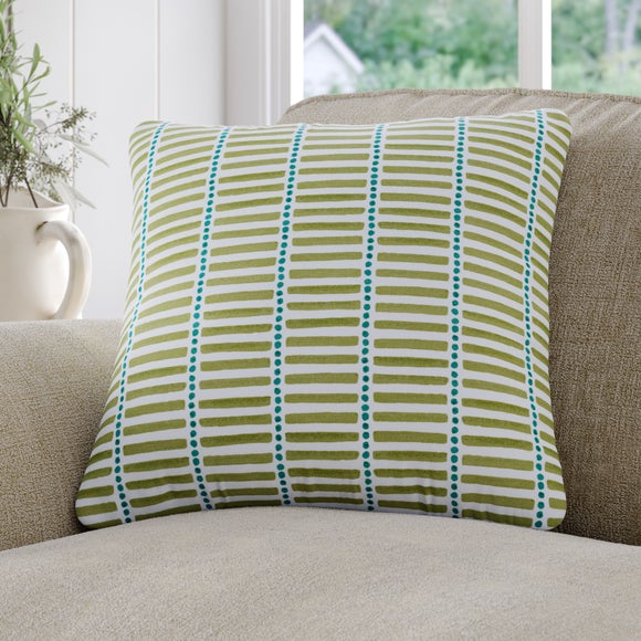 Report incorrect product information* Made to Order* Emily Bond* Motif design* 100% cotton* Available in different colourways* Choose plain or piped edge* Coordinating Made to Measure items available to purchase separately* Made in UK The Emily Bond Fergus Made to Order cushion will bring a fun, modern, and playful touch to your space. Showcasing a motif design of horizontal stripes and circles, choose from a selection of colourways. Made from 100% cotton, the fabric is long-lasting and breathable. A great choice for living rooms, bedroom...